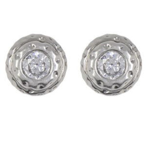 New Kate Spade New York Bezel CZ Hammered Round Stud Earrings in Clear Silver