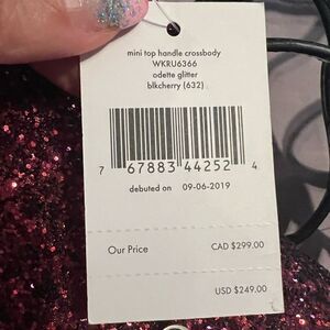 New with tag,  color is black cherry , size of bag is 4.7"h x 7.9"w x 2.5"d. handle drop: 5.3”. Interior features one main component and a zipper compartment. Crossbody strap is removable