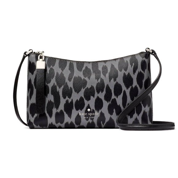 New Kate Spade Sadie Crossbody Animal Print Saffiano Grey Multi