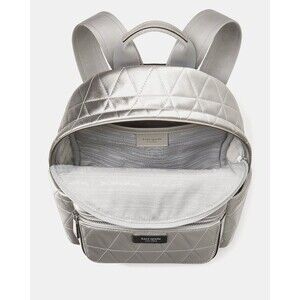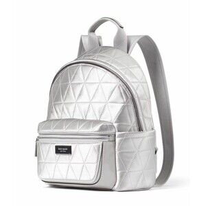 New Kate Spade Sam Icon Quilted Satin Small Backpack Silver