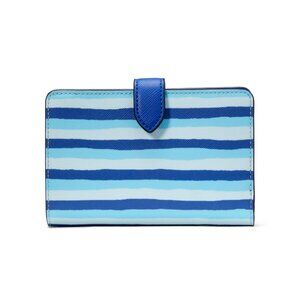 New Kate Spade Schuyler Wave Stripe Medium Compact Bifold Wallet Blue Multi