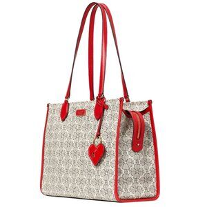 New Kate Spade Spade Flower Coated Canvas Large Market Tote Cherry Rose