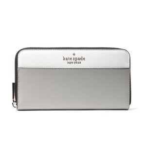 New Kate Spade Staci Colorblock Large Continental Wallet Leather Nimbus Grey