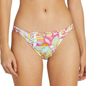 For a fun and flirty bottom, the Kate Spade's High Leg Bikini Bottom features a high leg cut paired with a colorful, playful floral print with pops of anemone flowers.