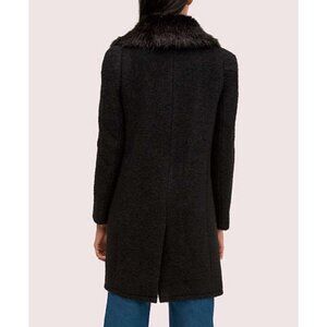 New Kate Spade Wool Blend Faux Fur Trim Coat Black 0, XS $798