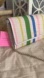 A pastel-hued stripe pattern details this wallet complete with a chain shoulder strap.