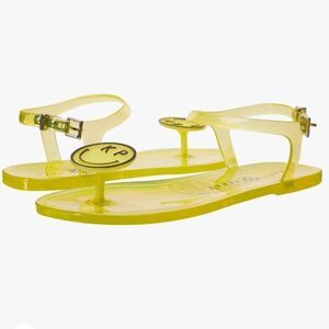 New Katy Perry Women's The Geli Flat Sandal size smile face yellow buckle size 6