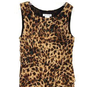New Kay Unger Tiered Ruffle Mesh Leopard Pattern Sleeveless Dress Large