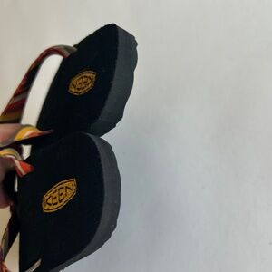 New Keen Yellow Orange White Canvas Black Rubber Outsole Flip Flops size 9