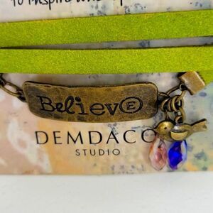 New Kelly Rae Roberts "Believe" Olive Green Ribbon Wrist Wrap Hook Boho Bracelet