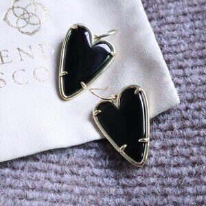 New. Kendra Scott Ansley Heart Gold Black Obsidian Earrings