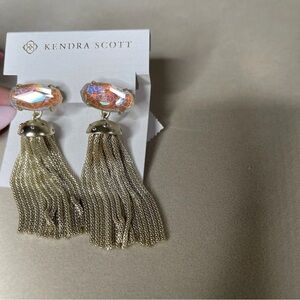 New! Kendra Scott Freya Statement Earrings Gold Dichroic Glass $128.