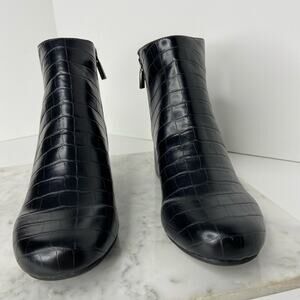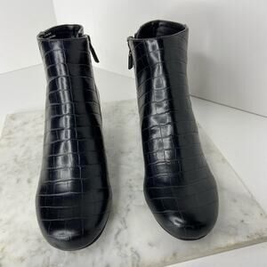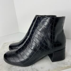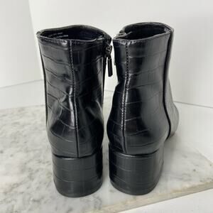 New Kenneth Cole Black Ankle Boots Croc Embossed Heeled Bootie Size 6