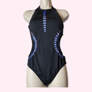 New Kenneth Cole Black Cutout Mesh Detail Full Coverage One Piece Swimsuit S