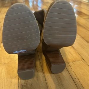 Kenneth Cole New York Tan Suede Boot 8 1/2 The go to tan suede tan boot with a comfortable block heel. Sophistication with a flair for the daring. Kenneth Cole New York Justin boots mix sleek, polished tan suede and a block heel with a stunning silhouette . The added subtle hidden elastic gusset provides extra stretch for an improved fit through the leg. 3-3/4 wrapped block heel Shaft: 16 height, 14 circumference Round closed-toe riding boots Full zipper closure at inner ankle Suede; man made sole Imported New never been worn comes from smoke free pet free home