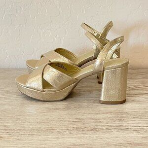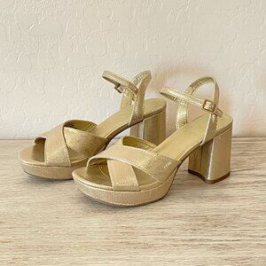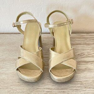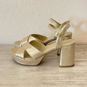 New Kenneth Cole Reaction Sandals Platform Heel 6.5 Roisin Metallic Gold