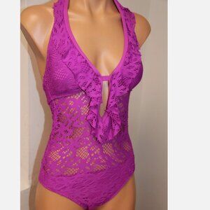 New Kenneth Cole Reaction Swimsuit Bikini 1 One piece Size S ORC Crochet