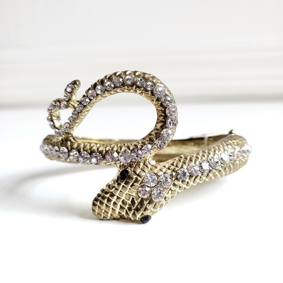 New With Tag Kenneth Jay Lane Couture Collection Vintage Crystals Gold Snake Bangle Hinged Bracelet