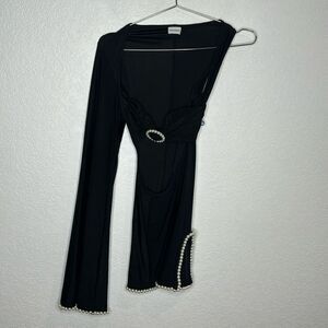 New Khanums Knur Pearl Trim Mini Dress in Black XS Revolve