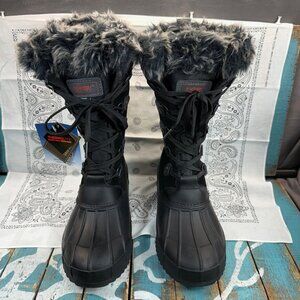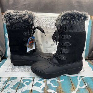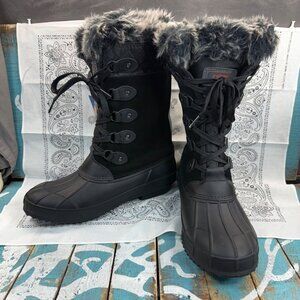 New Khombu Colby Tall Pac Boots Black Faux Fur Trim 3M Thermolite Womans Sz 10