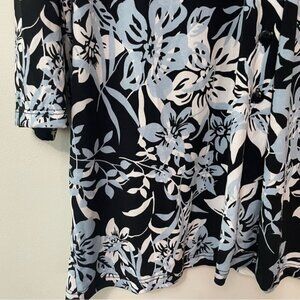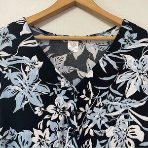 New Kim & Co Black Blue White Floral Brazil Knit Top Size XXL bin 4A