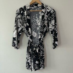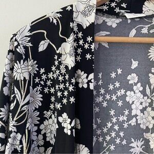 New Kim & Co Black & White Lightweight Floral Belted Cardigan Size Large Bin 3D