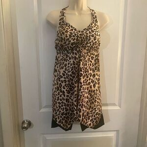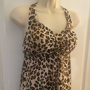Leopard print Tankini with biker shorts bottoms & braided back detailing