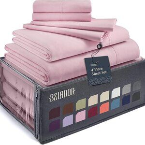 King Sheets Set ~ 4 Pillowcases 20 x 40 Inch - Flat sheet 108 x 102 Inch - Fitted Sheet 78 x 80 x 16 Inch