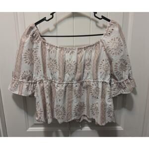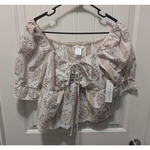 New Kirious Juniors Medium Cream Taupe Embroidered Sweetheart Scallop Crop Top