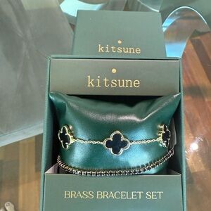 New Kitsune 2 pc Black Clover and Gold Brass Bracelet Set