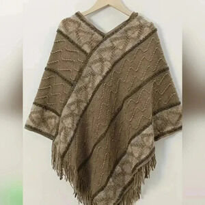 New With Tags One Size Poncho Blanket Wrap Cover-Up Shaw Tun Scarf Fall Winter Fringe Vacation Cruise Travel Fashionable Minimalist Modern Must-Have Bohemian Gypsy Festival Tribal Embroidered 60s 70's 80's 90's Hippie Retro Office essential Everyday Business Cottagecore Fairycore Farmhouse Casual Washable Grandmacore Chunky Cotton Poly Blend