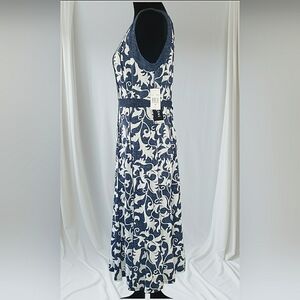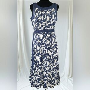 Gorgeous Denim Appliqués Embroidered Floral Lace Midi Soft Stretch Preceptions Women's Size Medium Petite Step out in style with this elegant blue and white floral dress Perfect for any occasion, this dress combines comfort with a chic design. Wedding Guest Garden Party Career Office Casual Church Versatile Business Casual Washable Allseason Packable Lightweight Beachy Vacation Cruise Old Money Quiet Luxury Country Club Brunch Spring Summer Events Cocktail Picnic Travel ***No Pockets **