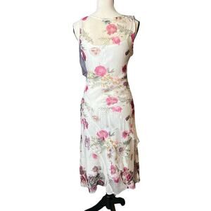 New Komarov Sleeveless Dress in Cream w/Pink Purple Floral Print Size Small/Med
