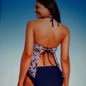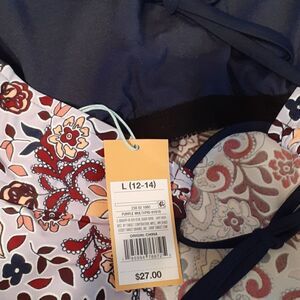 New Kona Sol High Neck Tankini Top Women's Large Purple Multi New With T…