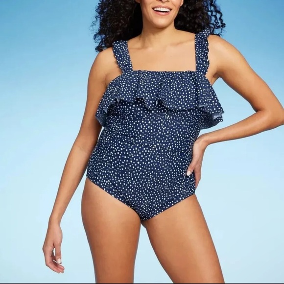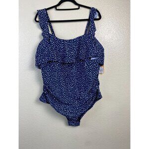 New Kona Sol One Piece Swimsuit womens Plus size 20 Full Seat Coverage Blue dots