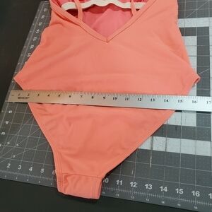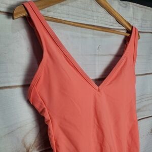 New Kona Sol Peach V-neck One Piece High Back Adjustable Straps Swimsuit Medium