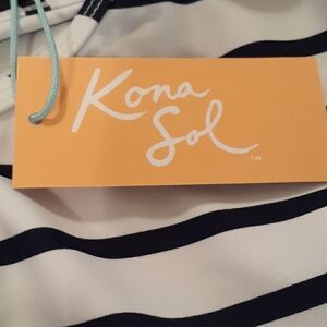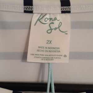 New Kona Sol Plus Size Swimwear Top Blue/White 2X New With Tags