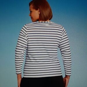 Kona Sol Women's Plus Size Navy Blue And White Striped Swimwear Top. Longsleeve, Crewneck. Size: 2X
