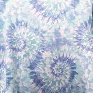 Koolaburra by UGG Light Weight Oversized Ruffle Top. In the color Blue Tie Dye. Short sleeves with ruffle detail, scoop neckline, kangaroo pocket. A lightweight sweater knit material. Relaxed fit.