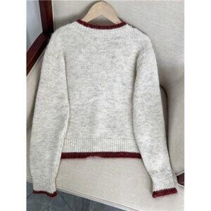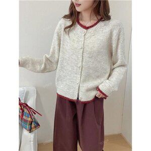 New Korean Style Color Block Beaded Knit Cardigan, Casual Versatile Sweater Top