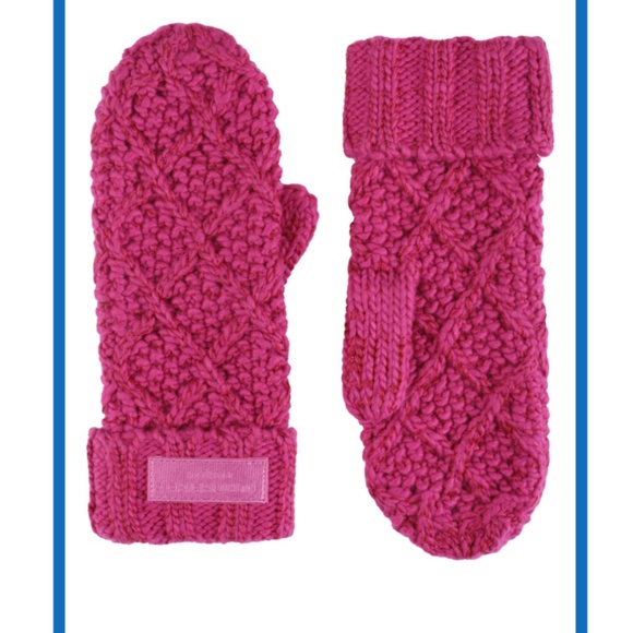 New Kurt Geiger London Metallic Cable Stitch Mittens FUCHSIA W/ TONAL LUREX
