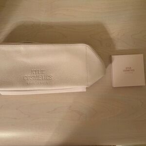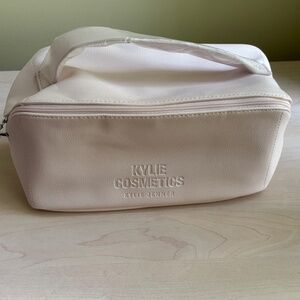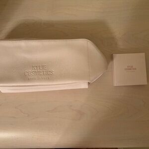 Stunning New Kylie Cosmetics Light Pink Zippered Cosmetic Case w/ Zipper Charm & Mirror. This gorgeous set is a perfect accompaniment to each other. This beautiful case features a lovely silver “ K” charm which accents the cosmetic case beautifully. This lovely case features a handle and a full outer zipper. The inner aspect of this bag includes and inner zipper for your security to store your lipsticks or trinkets. There are also two inner pockets and another larger inner pocket to store your makeup brushes. This chic bag is perfect for your everyday or travel needs. Also included is a Kylie cosmetics compact mirror. Carry this beautiful mirror wherever you may go. You can store this mirror inside the Kylie cosmetics bag.