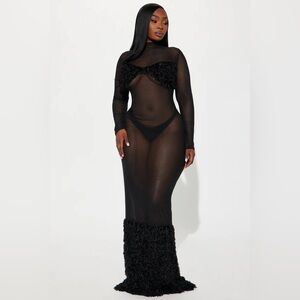 New Kylie High Neck Sheer Maxi Dress in Black Size XL