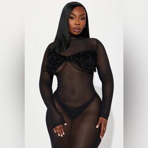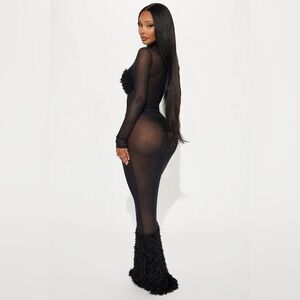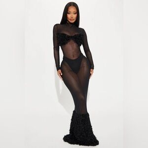 New Kylie High Neck Sheer Maxi Dress in Black Size XL