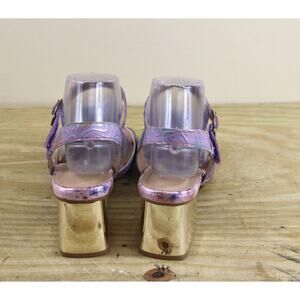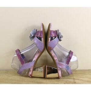 New L' Artiste Sandals 40 Leather Difi Floral Embellishment Gold Block Heel