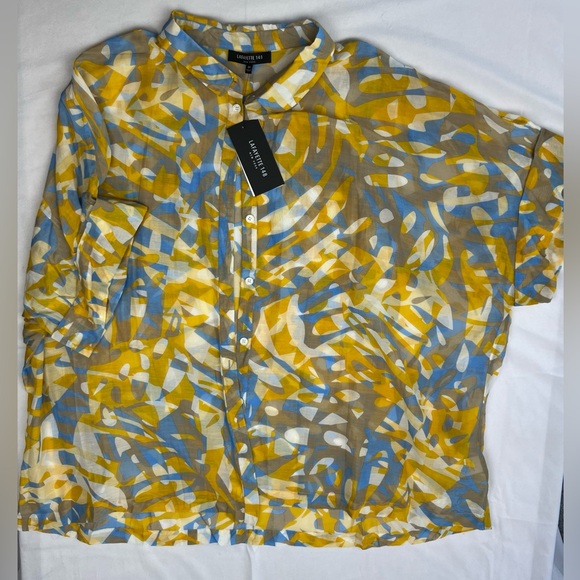 New LAFAYETTE 148 Silk Blend Golden Summer Blouse - Button Front - Abstract 3X