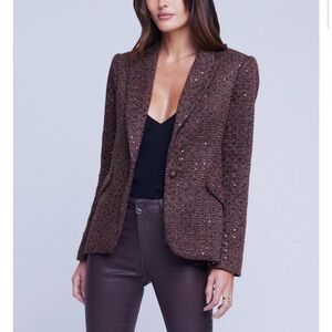New without tag L’AGENCE Lagence Chamberlain Tweed Sparkling Blazer in chocolate brown