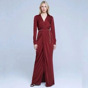 New L'AGENCE Thea Twist Front Burgundy Column Evening Maxi Gown NWT Size 8
