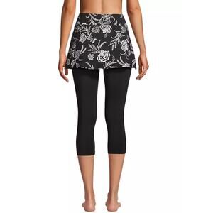 New LANDS' END Women's Black White High Waisted Modest Swim Leggings Size L
