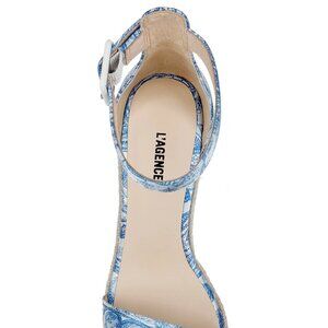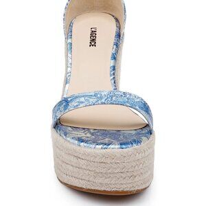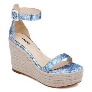 New L'Agence Avice Leather Espadrille Platform Blue/ Ivory Wedge Sandals 8.5 US
